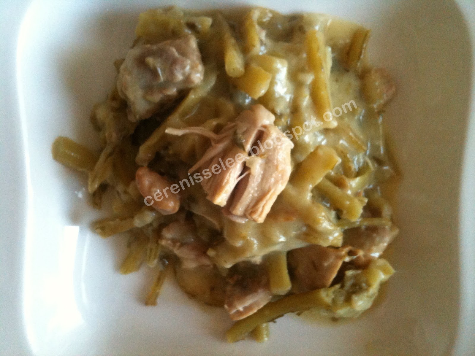 Browsing on my cooking books and the recipes on the internet, I found out that there are recipes of salad and warm dish with meat. Having recently had this mezze feast at home, I went for making the warm golden thistle with meat. Regarding the meat, the recipes mention either lambs meat or chicken. There was this recipe posted by a lady who was saying that she used chicken legs as this was what she had available at home. So I conclude that you are free with the choice and type of the meat you use (of course you are :p)